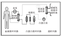 肝功能衰竭时,肝脏代谢、解毒和调节功能障碍,体内毒素大量堆积。体内多数潜在毒素均与蛋白结合,尤其是白蛋白。毒素与白蛋白结合后不能通过透析滤过膜,不能经常规血液净化方法如血液透析或血液滤过清除。