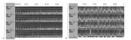 A.出生后36 h持续低电压改变;B.出生后7 d背景活动较前恢复。
