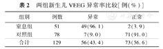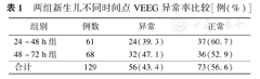 两组新生儿不同时间点VEEG异常率比较[例(%)]