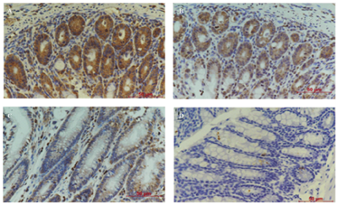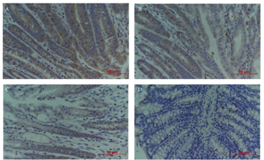 肠组织石蜡切片经脱蜡脱水,热抗原修复,过氧化氢灭活内源性酶,山羊血清封闭,加一抗:Anti-Myeloperoxidase抗体(1∶100稀释)、Anti-Histone H3(citrulline R2+R8+R17)抗体(1∶200稀释),同时以PBS替代一抗作为阴性对照。4 ℃孵育过夜,孵育生物素羊抗兔IgG二抗20 min,滴加新鲜配制的DAB显色液,显微镜下观察,以棕黄色或棕褐色为阳性信号,终止显色,中性树脂封片。