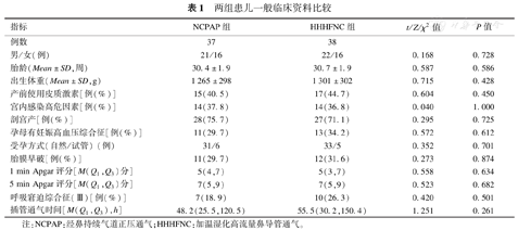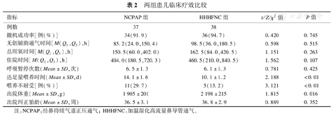 | 指标 | NCPAP组 | HHHFNC组 | t/Z/χ2值 | P值 |