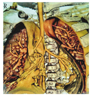 桥支气管最早发现于1976年的婴儿尸检,供应右肺中下叶通气的支气管来源于左主支气管,形态似拱桥形状,跨越纵隔而被形象地命名[14]。桥支气管常见于右侧,临床表现为出生后反复或持续咳嗽、喘息、气促、呼吸困难、发绀、肺炎、营养不良、生长发育迟缓等症,常以"出生后呼吸困难或反复肺部感染"就诊,查体无该病区别于其他疾病的特征性表现,常伴有气管-支气管狭窄、左肺动脉吊带,肺部可出现局限性肺气肿或肺囊样过度膨胀[15]。