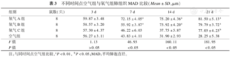 不同时间点空气组与氧气组肺组织MAD比较(Mean±SD,μm)