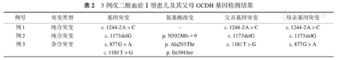 3例戊二酸血症Ⅰ型患儿及其父母GCDH基因检测结果