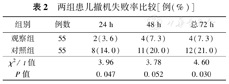 | 观察组 | 55 | 2(3.6) | 4(7.3) | 4(7.3) |