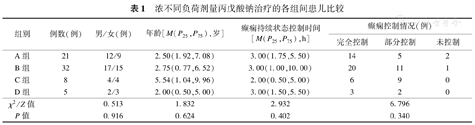 浓不同负荷剂量丙戊酸钠治疗的各组间患儿比较