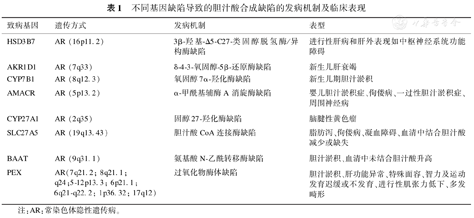 不同基因缺陷导致的胆汁酸合成缺陷的发病机制及临床表现