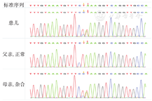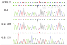 基因分析:由智因东方公司对患儿及父母进行全外显子测序、基因数据分析及疑似致病突变Sanger测序验证。结果显示:在患儿染色体7q11上检测到SBDS基因的两个杂合突变c.184TA>CT和c.258+2T>C,分别来自母亲和父亲,母亲存在c.184TA>CT的杂合突变,父亲存在c.258+2T>C的杂合突变,见图2、图3。