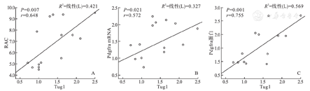 Tug1的表达量与RAC值及Pdgfra mRNA和蛋白表达量呈显著正相关,见图5。