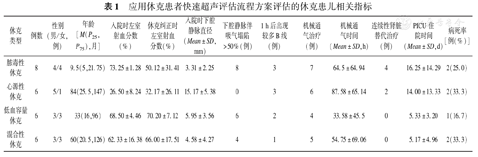 8例脓毒性休克患儿死亡2例,均为入院24 h内死亡。6例心源性休克患儿中,2例超声评估后行体外膜肺氧合(ECMO)治疗均存活,ECMO运行期间,每日均行床旁重症超声评估,监测心功能、肺水、腹腔渗出及导管位置、血管内血栓等情况。6例低血容量休克患儿中4例行机械通气(因中枢性呼吸衰竭、白血病凝血功能异常肺出血各1例,外科手术后呼吸支持2例),死亡1例(外伤失血性休克,死于脑功能衰竭)。见表1。