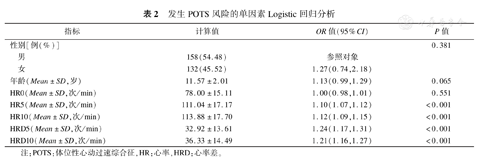 HR和HRD与儿童及青少年POTS发生存在关联,但HUTT不同时间点的HR和HRD对发生POTS的效应值大小影响不大。