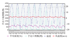 手足口病高发年龄为3岁以下幼儿,病原以非EV71非CoxA16型肠道病毒最多见。平均温度、平均湿度、风速均与手足口病的发病相关,可以根据手足口病与气象因素关系建立模型,根据模型进行手足口病预测,做到早期监控。