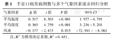| 气象因素 | β值 | t值 | P值 | 95%CI |