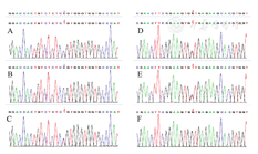 A:患儿携带c.782(exon9)C>T杂合变异;B:父亲的c.782(exon9)无变异;C:母亲携带的c.782(exon9)C>T杂合变异;D:患儿的c.314+1(IVS3)G>T杂合变异;E:父亲的c.314+1(IVS3)G>T杂合变异;F:母亲,c.314+1(IVS3)无变异。