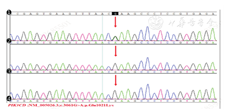 ①:参照序列;②:患儿PIK3CD基因第24外显子存在C.3061G>A纯合错义突变;③:患儿父亲相同位点无突变;④:患儿母亲相同位点无突变。