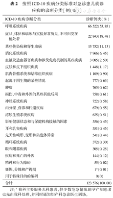 按照ICD-10疾病分类标准对急诊患儿就诊疾病的诊断分类[例(%)]