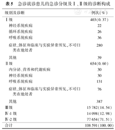 急诊就诊患儿的急诊分级及Ⅰ、Ⅱ级的诊断构成