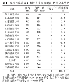 注:高铁行驶时间为车站到车站所用时间,转诊医院至所在城市高铁站救护车所用时间为20~50 min不等;北京各车站至笔者所在医院救护车时间为20~40 min不等。