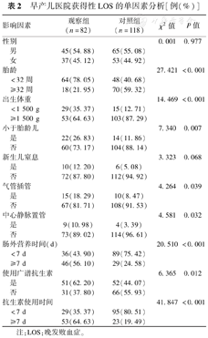 早产儿医院获得性LOS的单因素分析[例(%)]