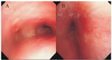 A.隆突,左主支气管压迫性狭窄闭塞;B.左主支气管开口。