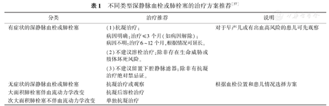 不同类型深静脉血栓或肺栓塞的治疗方案推荐[37]