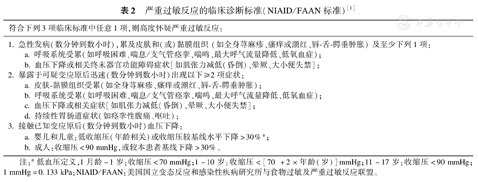 严重过敏反应的临床诊断标准(NIAID/FAAN标准)[1]