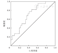 绘制ROC曲线如图1所示,BALF HCMV DNA拷贝数作为诊断HCMV活动性感染即HCMV肺炎的AUC值为0.708,诊断阈值8.83×103 copies/mL的敏感度、特异度分别为77.27%和58.33%,阳性预测值53.13%,阴性预测值80.77%。