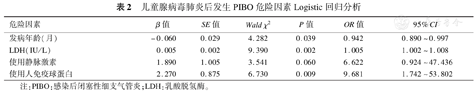 儿童腺病毒肺炎后发生PIBO危险因素Logistic回归分析