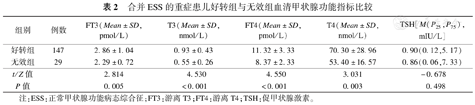 注:ESS:正常甲状腺功能病态综合征;FT3:游离T3;FT4:游离T4;TSH:促甲状腺激素。