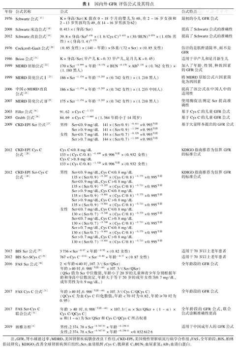 | 2003 | Filler公式[16] | 91.62 ×Cys C-1.123 | 基于Cys C的儿童GFR公式 |