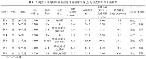 7例先天性高胰岛素血症患儿的临床表现、生化检查结果及干预效果