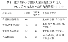 重庆医科大学附属儿童医院近20年收入PICU治疗的儿童神经肌肉病数据