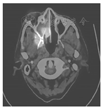 入院后于2017年11月至2018年5月给予R-CHOP方案联合化疗7个疗程,同时予以鞘注化疗。化疗过程顺利。第1疗程化疗结束,患者诉右眼肿胀明显消退,右侧面部麻木及头痛明显减轻,右眼仍失明。2018年3月22日复查PET/CT:淋巴瘤治疗后改变(与2017年11月23日PET/CT比较:全身多发区域淋巴结及节外器官病变基本消失)。4月24日再次入院,患者无右侧面部肿胀、麻木等不适,右眼窝凹陷,右眼睑无下垂。6月21日(7个疗程后)复查鼻窦冠状位CT:肿块范围较前明显减小。疗效良好,此后门诊随访,患者病情稳定。