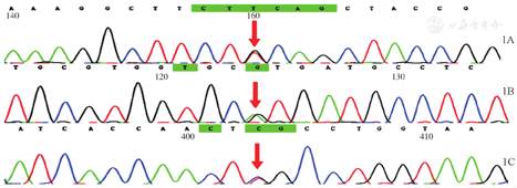 注:1A:c.953T>G;1B:c.1196G>A;1C:c.1664C>T