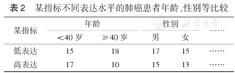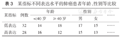 某指标不同表达水平的肺癌患者年龄、性别等比较