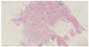 患者男,57岁,因"上腹痛10余d"于2021年12月27日就诊于安徽中医药大学附属芜湖市中医医院专硕研究生培养基地外三科。疼痛呈持续性隐痛,伴后背部胀痛,前倾位疼痛缓解,大便次数增多,每日4次,否认黏液便及血便,近3个月体质量下降约2 kg,既往有高血压、高血脂病史2年余,否认饮酒、吸烟史,否认肿瘤相关疾病家族史。入院体格检查:神志清晰,全身皮肤巩膜无黄染,浅表淋巴结未触及明显肿大,腹平软,肝脾肋下未触及,右上腹部及剑突下深压痛(+),反跳痛(-),右中上腹部可触及一界限不清肿块,质地中等,活动度欠佳。上腹部平扫+增强CT检查提示:肝脏与胰头间腹膜后脂肪源性肿块,胃窦壁稍厚。上腹部上腹部磁共振成像(magnetic resonance imaging,MRI)检查提示:胰头、右肾、下腔静脉之间异常信号包块,T1WI及T2WI呈高信号,抑脂信号减弱,周围组织可见推压征象,考虑脂肪瘤,高分化脂肪肉瘤不除外(图1)。血液癌胚抗原、甲胎蛋白、糖类抗原CA-125、糖类抗原CA-199、总前列腺特异性抗原、游离前列腺特异性抗原等肿瘤标志物检查均在正常参考值范围。血常规、肝肾功能及胰腺内外分泌功能检测等均未见异常。患者于2022年1月10日在全身麻醉下行"腹腔镜腹膜后肿瘤切除术",术中见肝胆胰脾及胃肠道、盆腔无异常,肝下十二指肠右侧接近右肾门处有一大小约9 cm×8 cm×6 cm类圆形包块,有完整包膜,质地中等,肿块内侧与十二指肠及胰头有粘连,有一定活动度,完整游离肿块,处理肿块与胰腺之间粘连,结扎血管,切除肿块,冲洗腹腔,右肝下腹膜后置引流管,关腹。术后予以预防感染、抑酸、抑酶、补液等治疗。术后第1、3、5、8天腹腔引流液分别为470 ml、200 ml、50 ml、20 ml,腹腔引流液淀粉酶分别为14 065 U/L、560 U/L、80 U/L、10 U/L,血淀粉酶分别为1 314.8 U/L、450.0 U/L、112.9 U/L、20.6 U/L,手术切口甲级愈合,术后10 d复查CT提示肝肾隐窝有少量积液,于2022年1月22日带管出院。2022年2月10日门诊随访,一般情况尚可,饮食及二便正常,B超复查未见异常,予以拔管。2022年5月30日门诊随访,患者情况尚好。术后病理检查:大体观灰黄色肿瘤,大小约8 cm×8 cm×6 cm,类圆形,分叶状,包膜完整,包膜周围未见粘连的其他脏器组织,切面质嫩灰黄色,中心部分区域可见少许似海星样灰白色纤维样组织。镜下检查见肿瘤表面为完整的纤维性包膜,肿瘤组织主要由大量成熟的脂肪组织、纤维结缔组织、大小不等的厚壁和薄壁血管、少量成熟的淋巴组织、周围神经组织组成,其内混杂的纤维结缔组织中可见形态良好的腺泡细胞和导管,细胞无异型性(图2)。免疫组化检查结果示管状腺体CK7(+),CK20(-), CDX2(+),SMAD4(+),腺泡细胞trypsin(+),syn(-)。S-100脂肪细胞(+),梭形细胞少许(+),CD34脂肪细胞(+),血管内皮(+),Vim梭形细胞(+),脂肪细胞(+),平滑肌肌动蛋白(-),肌细胞生成素(-),B淋巴细胞瘤-2基因少许梭形细胞,CD10部分脂肪细胞、梭形细胞(+),细胞增殖抗原标记物(-),增殖细胞核抗原腺上皮(+),淋巴细胞(+),脂肪细胞梭形细胞(少许+),Des部分梭形细胞,CK7(-),CK5腺泡、导管上皮(+)。病理诊断:腹膜后胰腺错构瘤(pancreatic hamartoma,PH)。患者术后有少量胰漏发生,经通畅引流治愈,术后随访6个月情况良好。