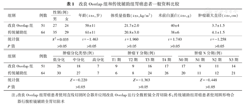 改良Overlap组和传统辅助组胃癌患者一般资料比较