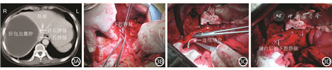 笔者临床实践发现:影像学检查结果示肝包虫囊肿紧贴并压迫血管,但术中肝包虫囊肿与血管很少出现严重粘连或肝包虫囊肿侵犯下腔静脉管腔的情况,通常均可通过外膜内外囊完整切除术进行切除。该手术方式在“外囊切除术”基础上进行创新[4,28, 29]。其优点及注意事项:可根治性切除肝包虫囊肿,术中出血量少,随访期间术后复发率为零,并发症发生率也较低。但需要正确寻找囊肿与肝脏之间的间隙,正确判断功能性和非功能性管道,在切除时,避免强力作用于囊肿,防止破裂,处理下腔静脉时需细心操作,避免损伤下腔静脉。