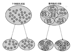 实验研究中某些干预很难以个体为单位进行施加,或者容易发生"沾染",因此通常采用整群随机试验(CRT,cluster-randomized trials),也称为社区随机化研究或社区干预研究。CONSORT指南对整群随机试验的定义是:以具有某些共同特征的个体构成的整群(如家庭、社区等)而非单个个体作为研究对象,采用随机抽样的方法(单纯随机、分层随机等)将整个整群分配到不同处理组,以整群为研究对象进行干预、随访,比较不同处理组的效应[1,2]。个体随机对照试验和整群随机试验的区别见图1[3]。