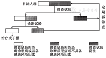 筛查试验一般不会单独使用,对筛查结果阳性或可疑阳性者需进一步做确诊检查,对确诊患病者或健康管理高危人群还需进行治疗或其他干预措施。图1为筛查与诊断试验流程示意图。