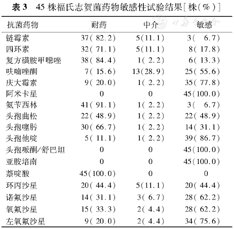 | 氨苄西林 | 41(91.1) | 1(2.2) | 3( 6.7) |