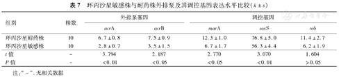 ±s)| 组别 | 株数 | 外排泵基因 | 调控基因 | |||