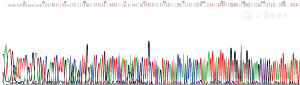 6种提取方法所得4种真菌(马尔尼菲青霉包括酵母相和霉菌相)DNA模板用真菌18S rDNA引物扩增后,PCR扩增产物5 μL经1.5%琼脂电泳,上述6种方法都可以扩增出阳性条带(图2),除白假丝酵母菌外其他3种真菌PCR阳性产物测序序列经BLAST比对后,18S rRNA同源性>99%,马尔尼菲青霉和小孢根霉测序图见图3和图4。