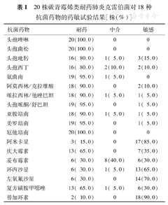20株碳青霉烯类耐药肺炎克雷伯菌对18种抗菌药物的药敏试验结果[株(%)]
