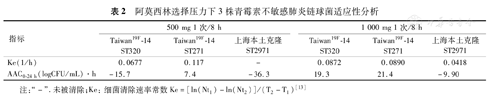 1 000 mg,1次/8 h下Ke显示,ST2971<ST320<ST271,500 mg,1次/8 h给药下ST320<ST271,上海本土克隆ST2971未被清除,菌落计数有增长。两种给药方式3株菌株的AAC0-24 h值比较结果是:ST271>ST320>ST2971,ST2971适应性最强,ST271最弱(表2)。