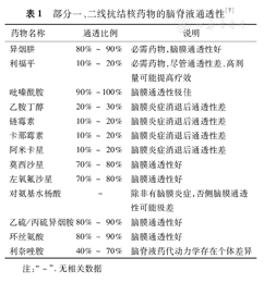 | 对氨基水杨酸 | - | 除非有脑膜炎症,否侧脑膜通透 |