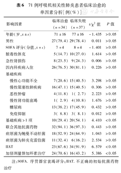 71例呼吸机相关性肺炎患者临床治愈的单因素分析[例(%)]