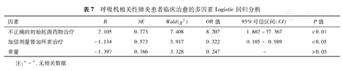 呼吸机相关性肺炎患者临床治愈的多因素Logistic回归分析
