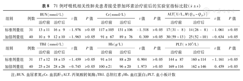 71例呼吸机相关性肺炎患者接受替加环素治疗前后的实验室指标比较(