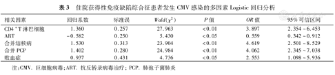 住院获得性免疫缺陷综合征患者发生CMV感染的多因素Logistic回归分析